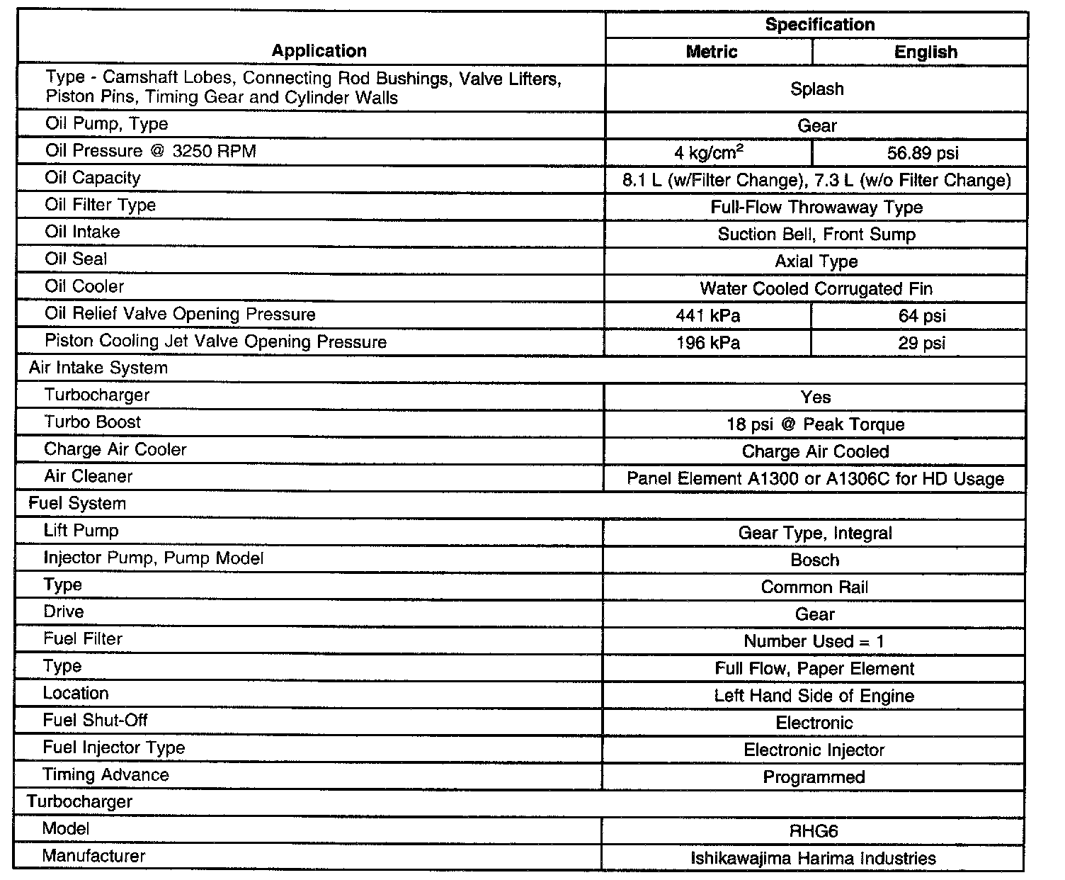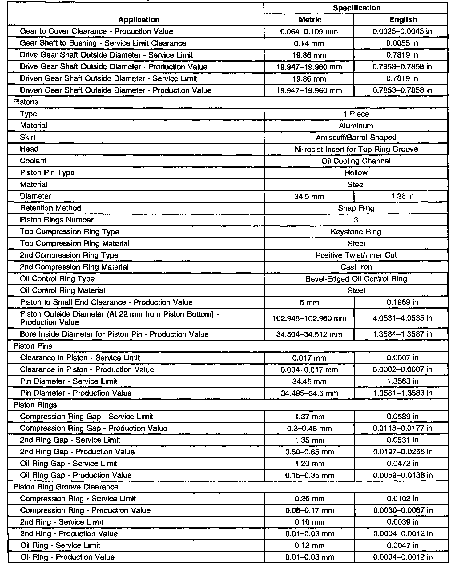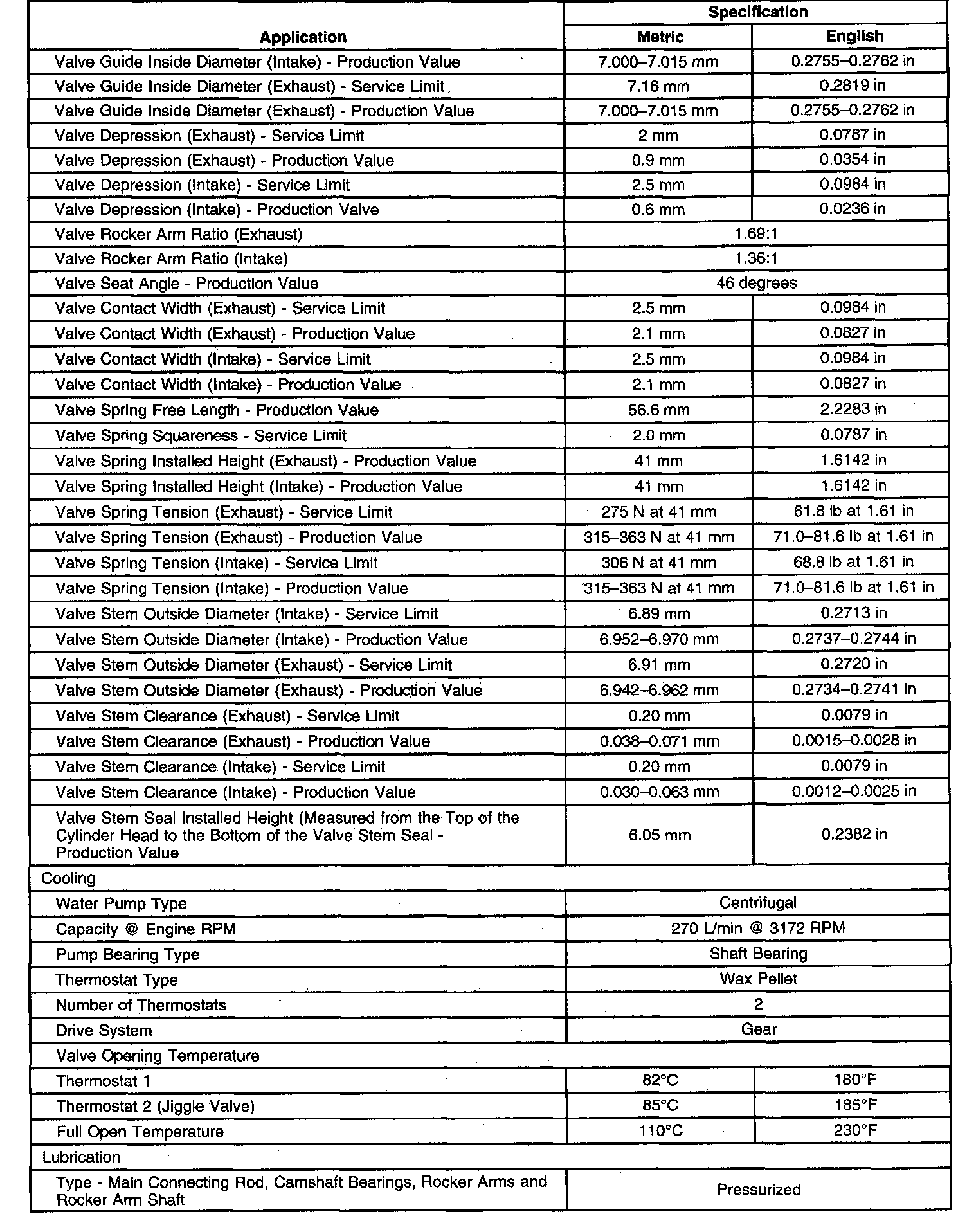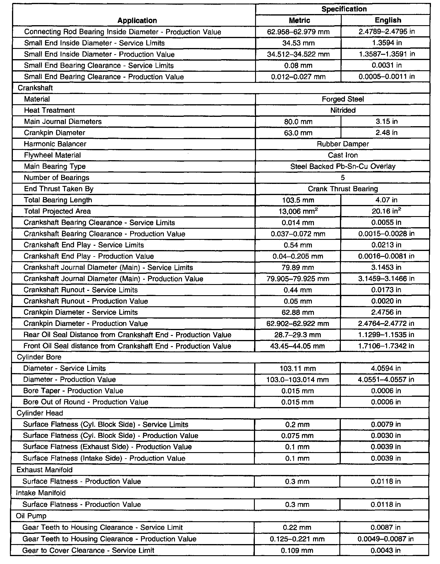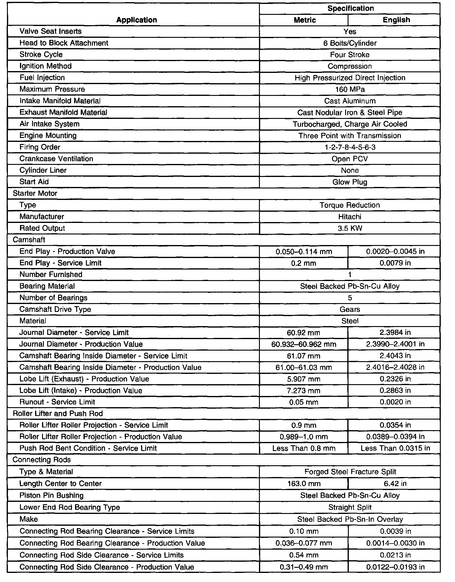 Engine Mechanical Specifications