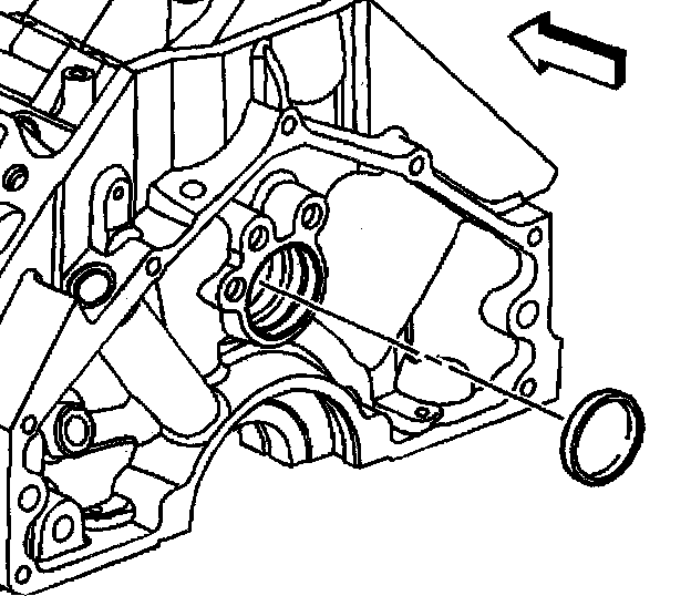 21. Apply sealer GM P/N 12377901 to the outside diameter of the new camshaft rear bearing hole plug.