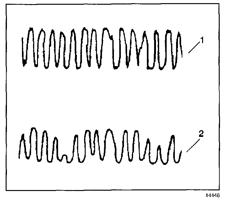 Whenever the sensor activity of the post-catalyst (2) oxygen sensor nears the sensor activity of the pre-catalyst (1) oxygen sensor, the catalysts efficiency is degraded.
