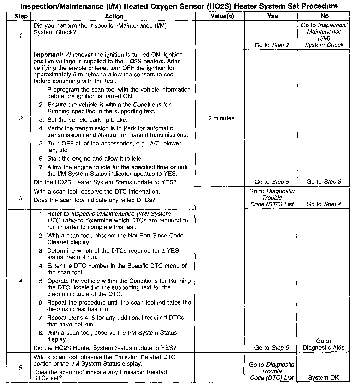 Inspection/Maintenance (I/M) HO2S Heater System Set Procedure