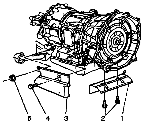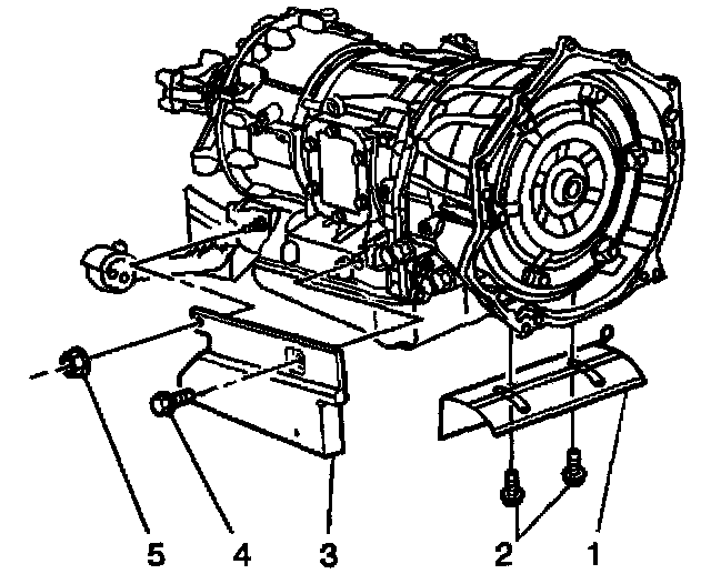 5. Remove the side heat shield (3) from the transmission.