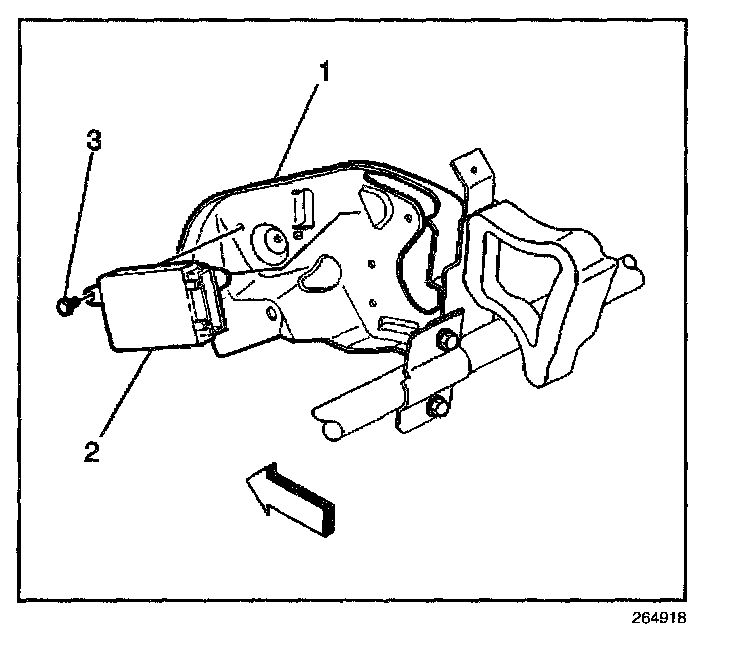 1. Remove the bolts (2) that retain the instrument panel center support bracket to the steering column bracket (1).
