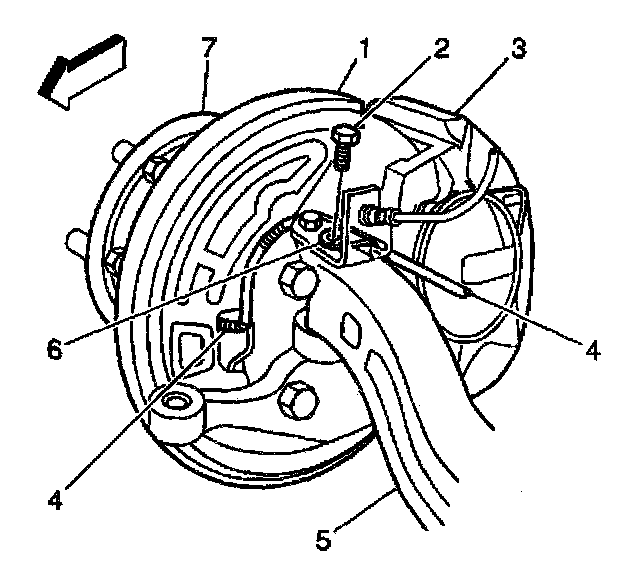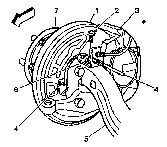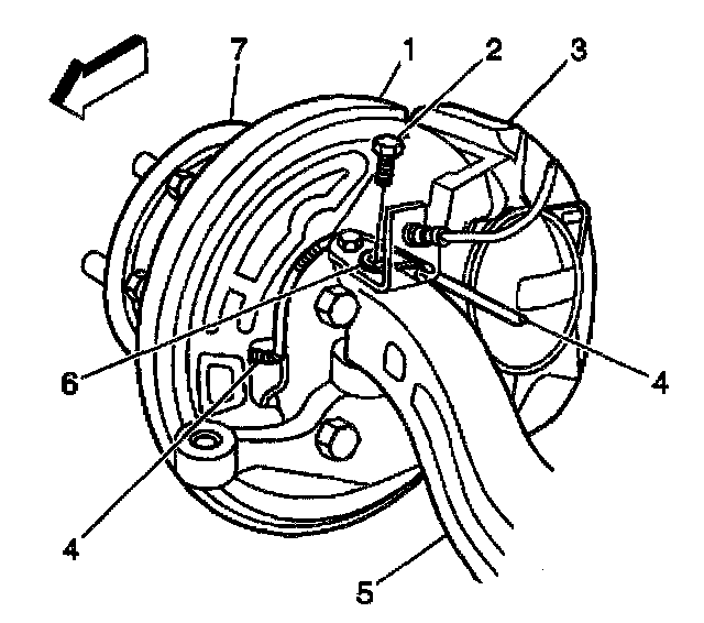 19. Take care to route the wheel speed sensor wire (4) through the opening in the splash shield (1) near the center mounting hole.