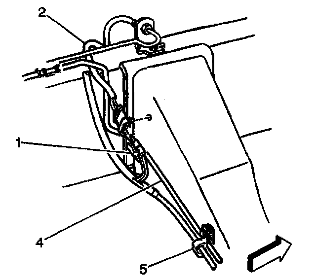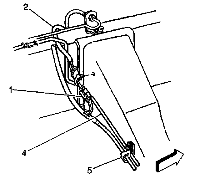 23. Install the wheel speed sensor mounting clip (5) to the inside frame rail.