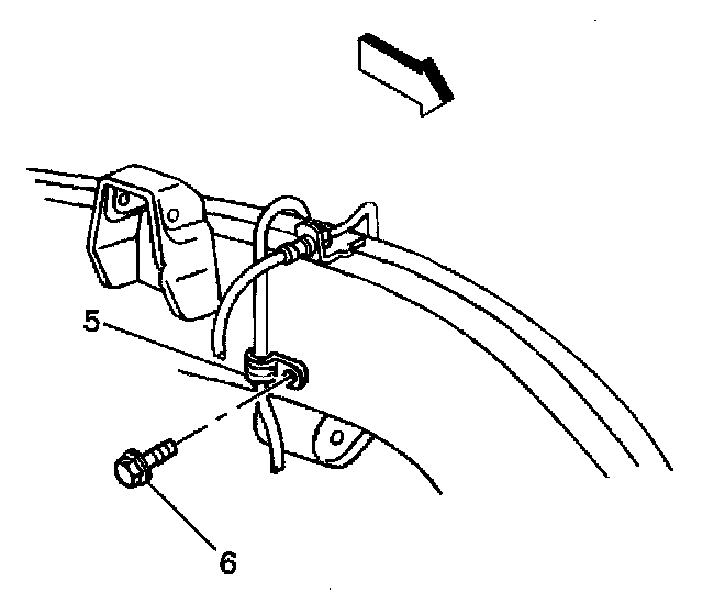 6. Wheel speed sensor wire mounting clip (5) attached to the frame rail.