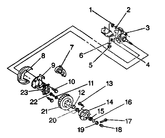 6. Remove bolts (22) attaching the rotor (21) to the hub (14).