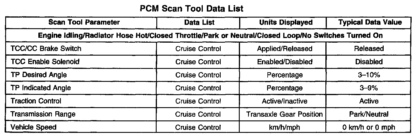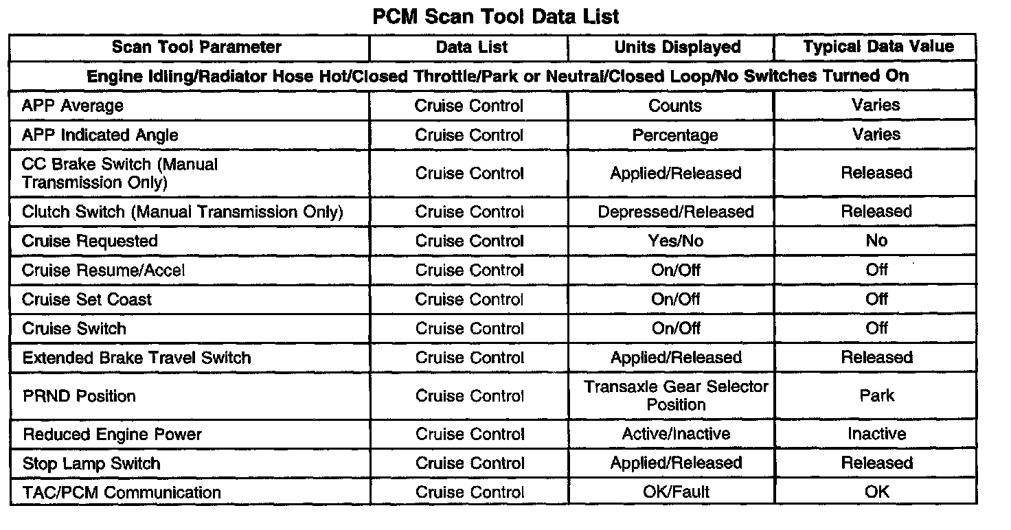 Scan Tool Data List - Powertrain Control Module (PCM)