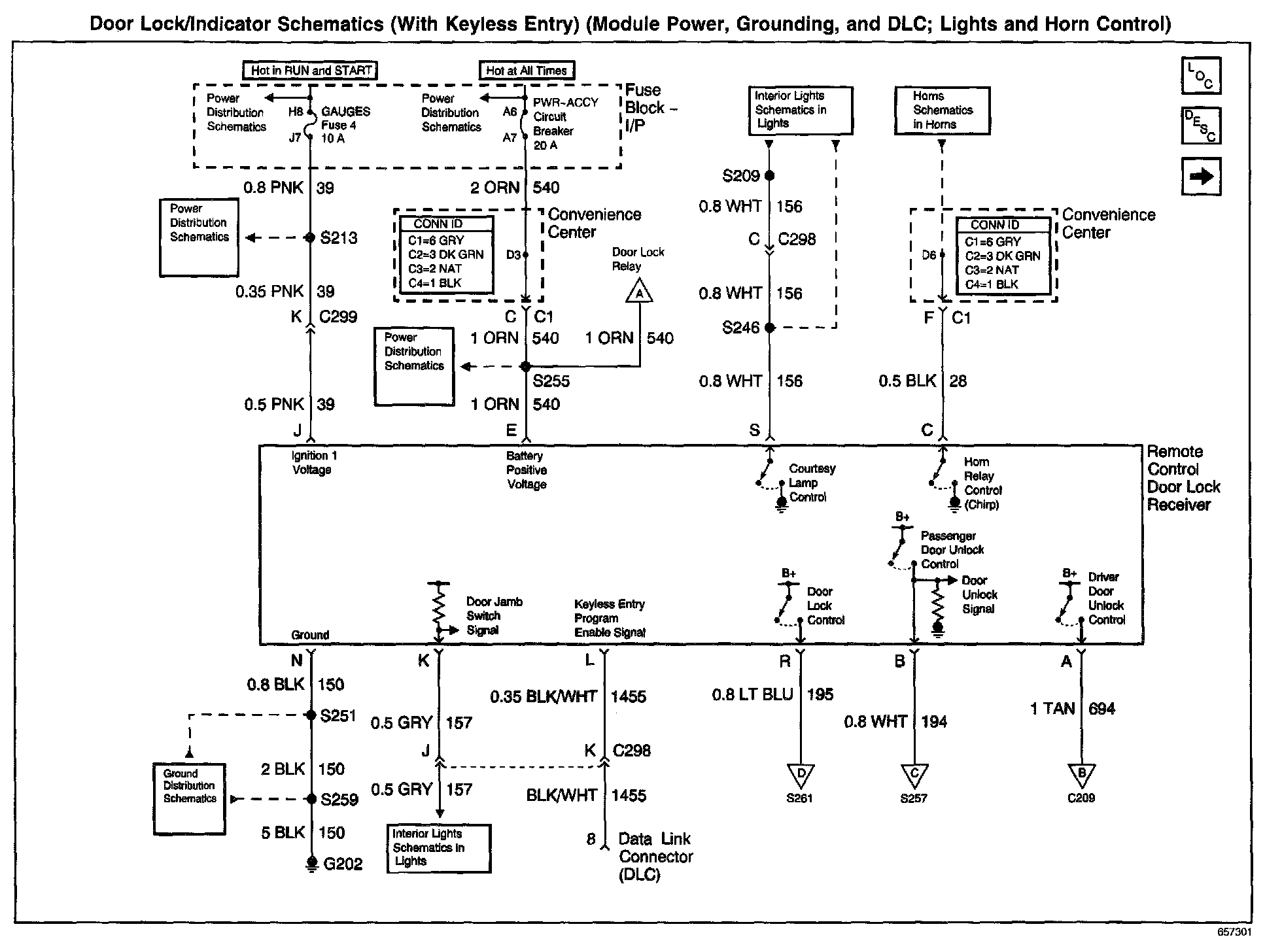 Door Lock/Indicator Schematics: With Keyless Entry (Module Power, Grounding, And DLC; Lights And Horn Control):