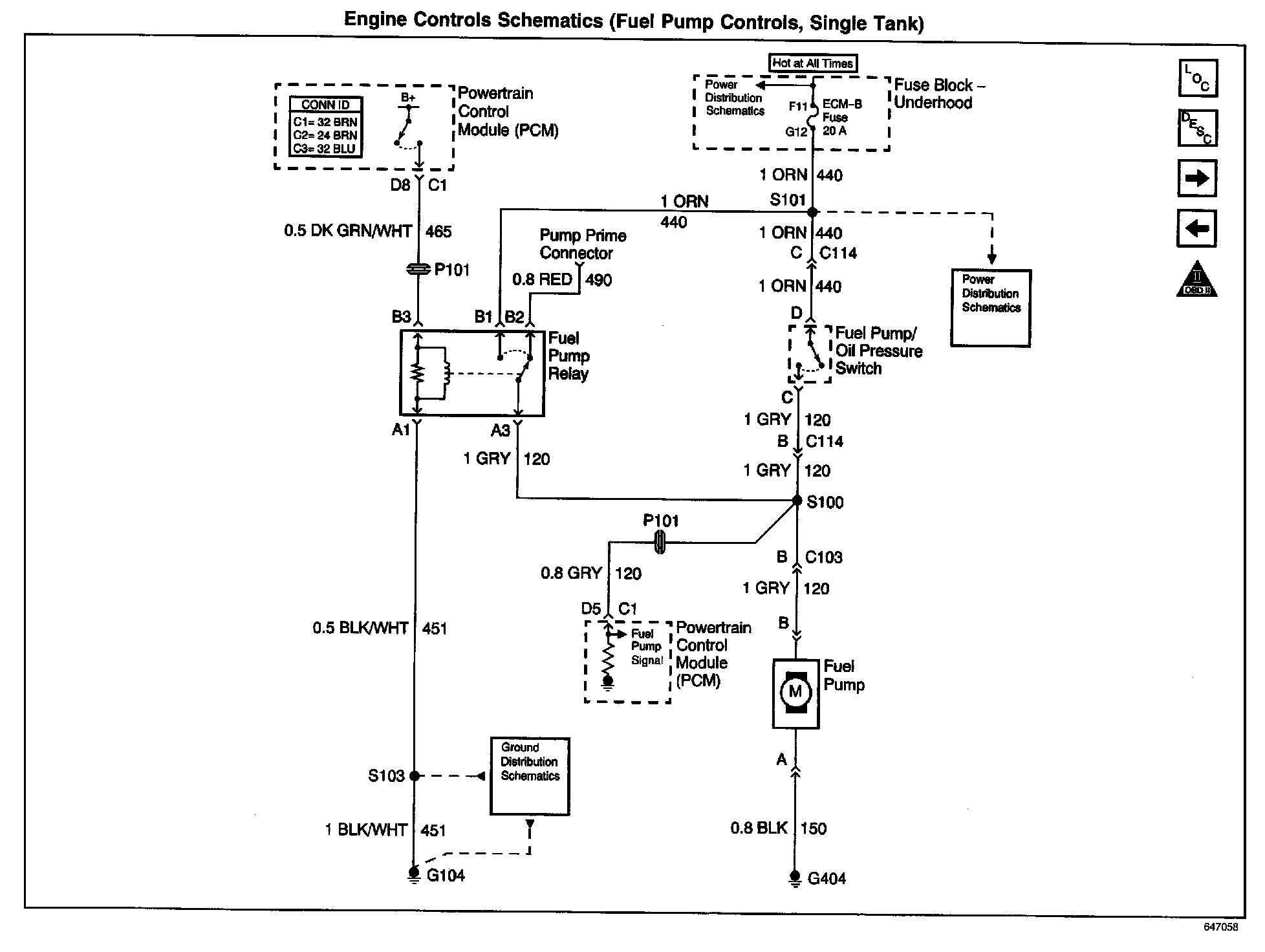 Engine Controls Schematics: Fuel Pump Controls, Single Tank: