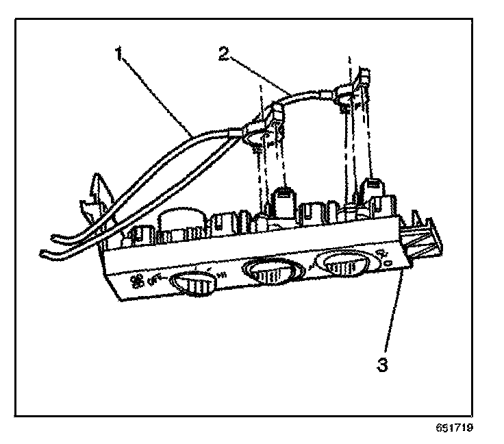 2. Install the mode cable (2) to the heater control assembly (3).