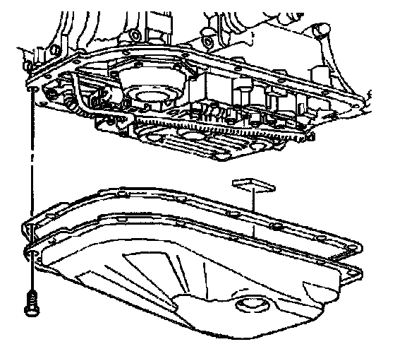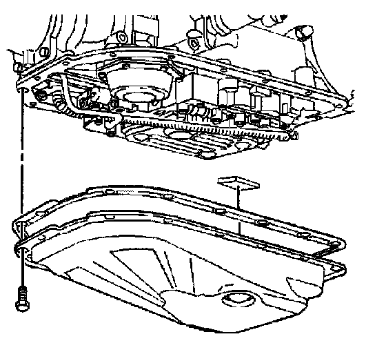 11. Clean the transmission case and the oil pan gasket surfaces with solvent.