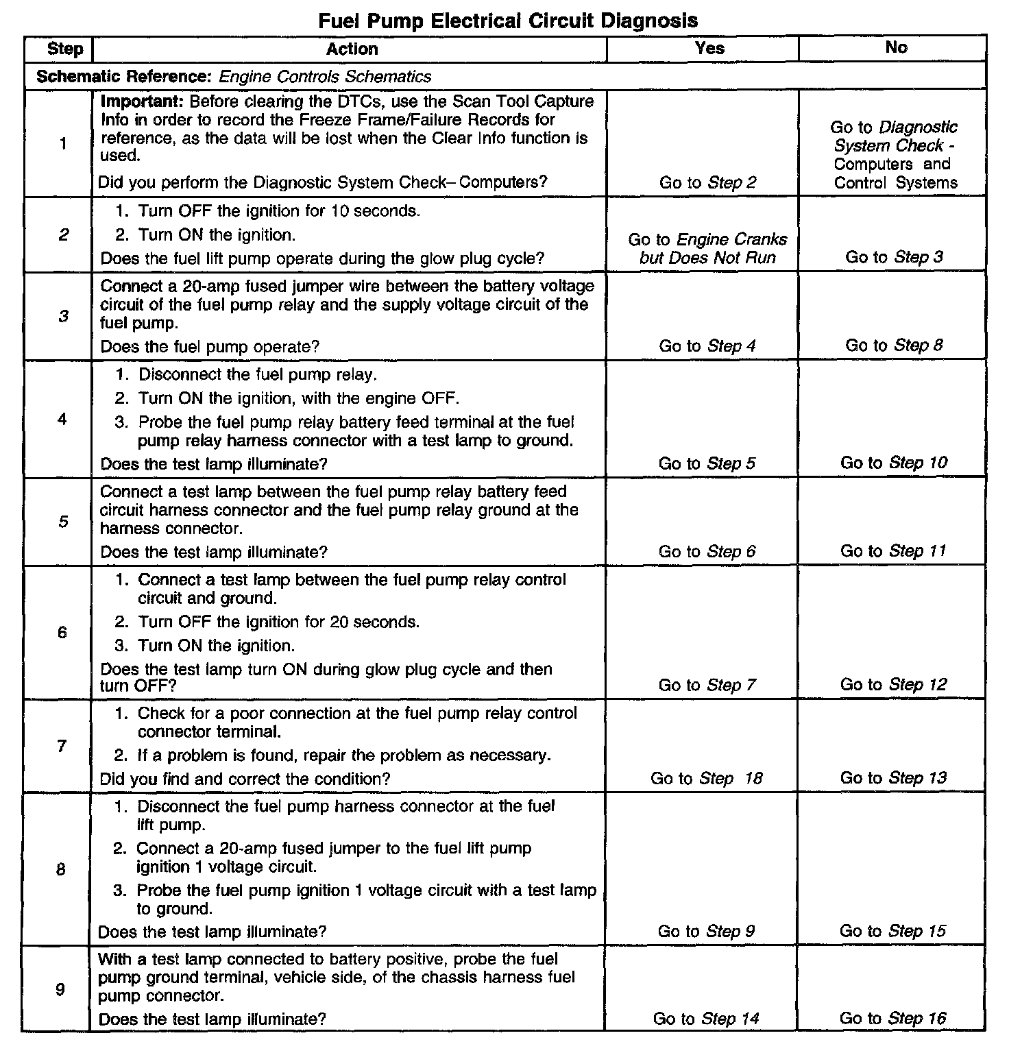 2. This step checks for proper operation of the fuel pump.