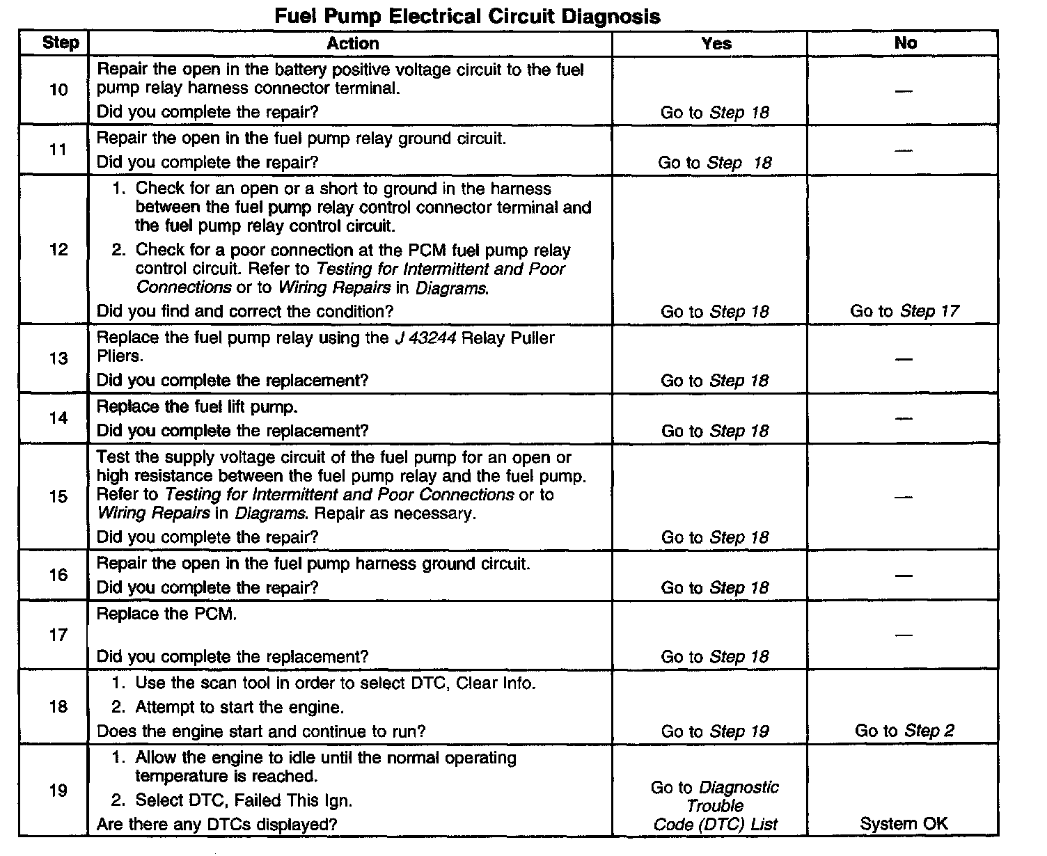 Fuel Pump Electrical Circuit Diagnosis