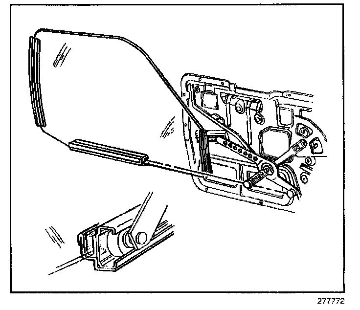1. Slide the inner mounting panel forward in order to release the regulator roller from the window sash. Install the inner mounting panel to the window sash.