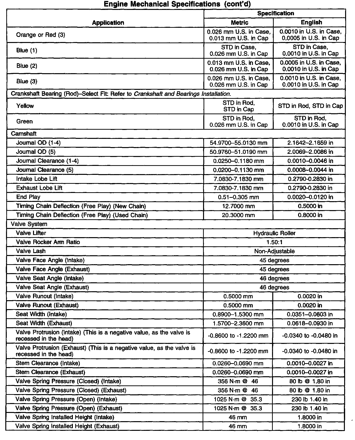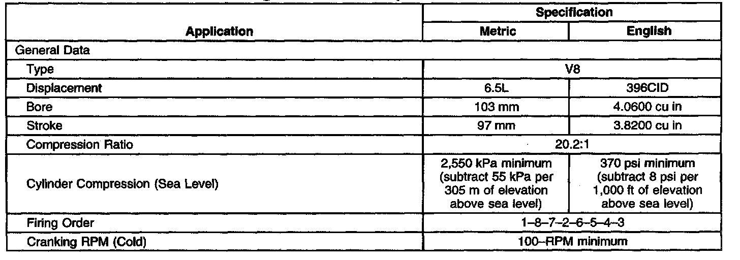 Engine Mechanical Specifications-Unit Repair