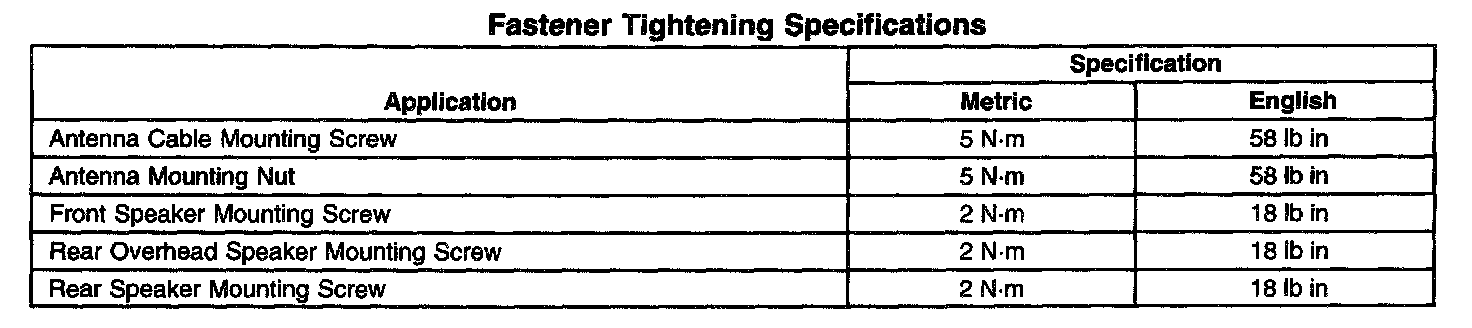 Fastener Tightening Specifications: