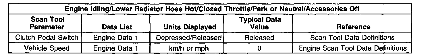Use only the parameters listed in the tables for diagnosis. If a scan tool reads other parameters, the values are not recommended by General Motors for use in diagnosis. For more description on the values and the use of the scan tool diagnosis the PCM inputs, refer to the applicable diagnosis. If all values are within the range illustrated, refer to Driveability Symptoms.