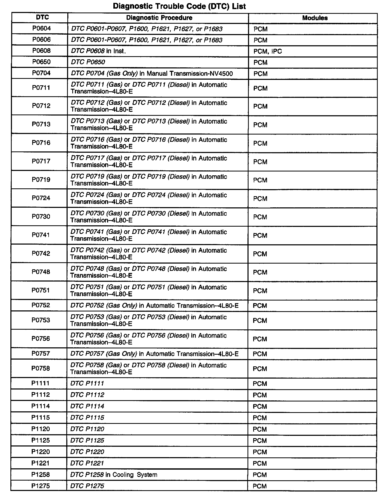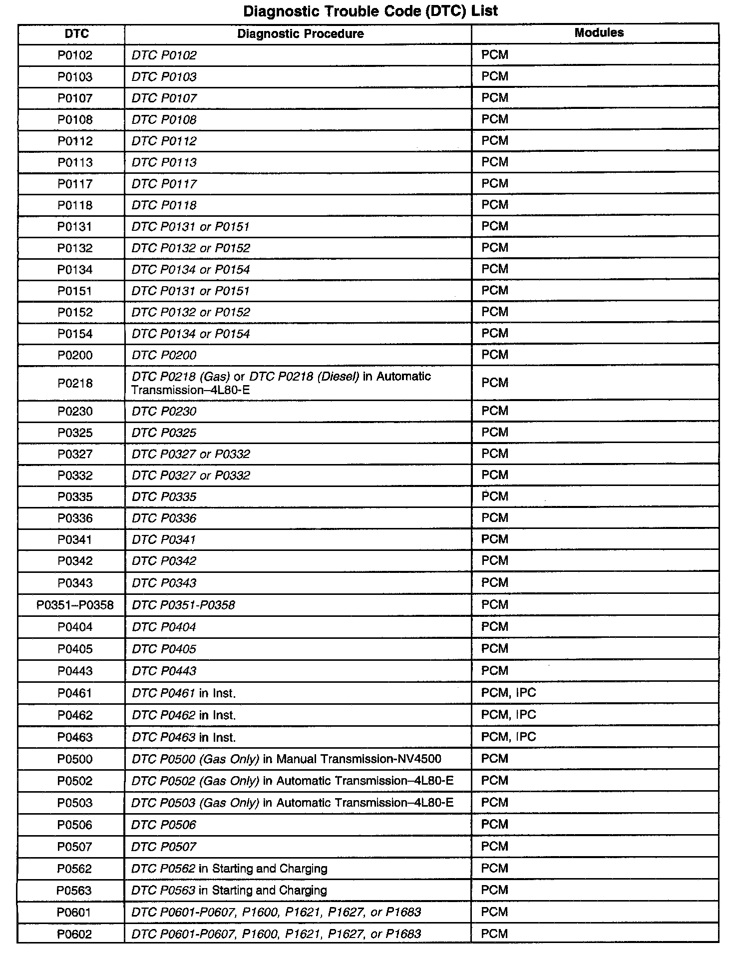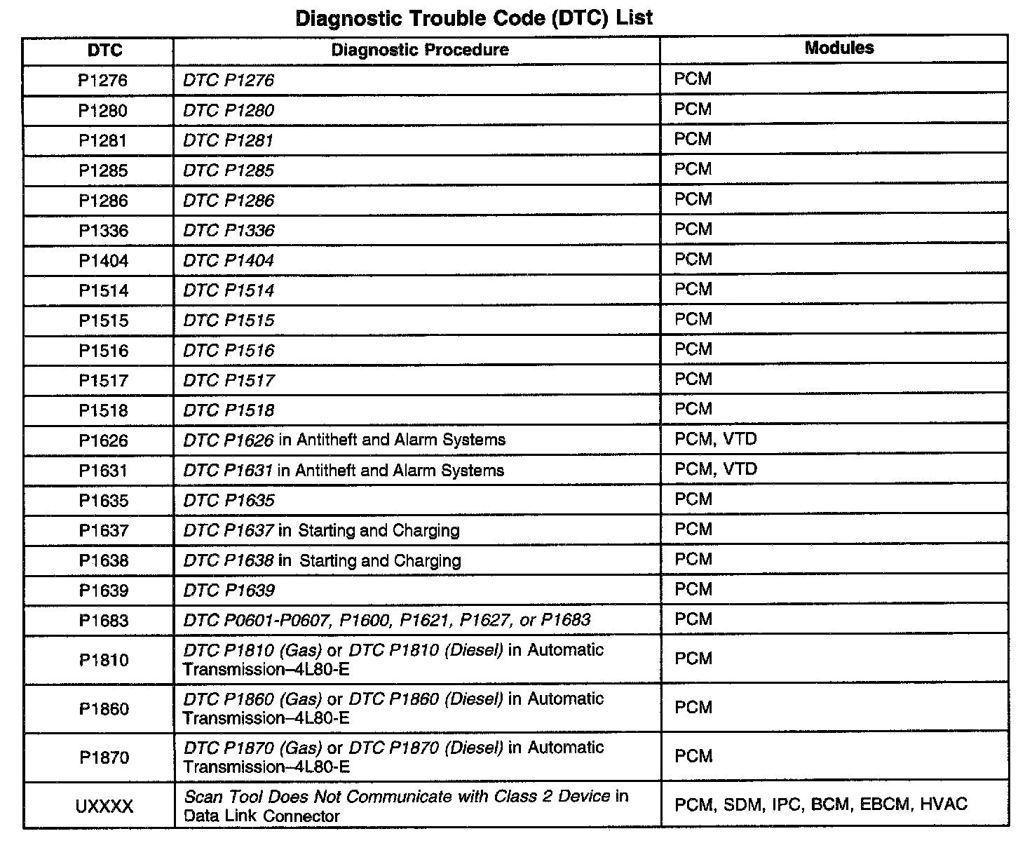 A L L Diagnostic Trouble Codes ( DTC )