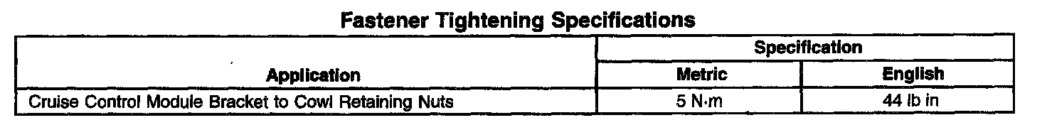 Fastener Tightening Specifications: