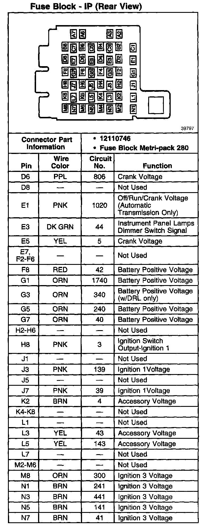 Fuse Block - IP (Rear View) (Part 2 Of 2):
