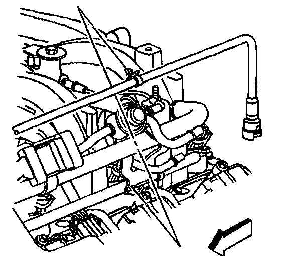 21. If equipped without RPO C51B, remove the EVAP canister tube clip from the fuel rail.