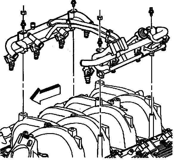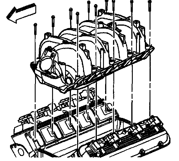 Removal ProcedureImportant: The intake manifold, throttle body, fuel rail and injectors may be removed as an assembly. If not servicing the individual components, remove the manifold as a complete assembly.