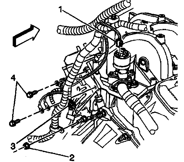 Tighten the engine wiring harness bolts to 5 Nm (44 inch lbs.).
