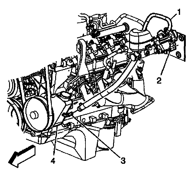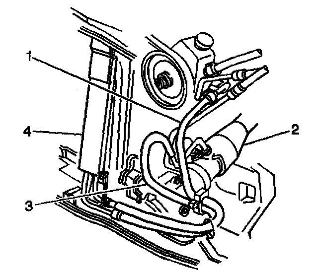 3. Install the power brake booster outlet hose to the power steering pump (4).
