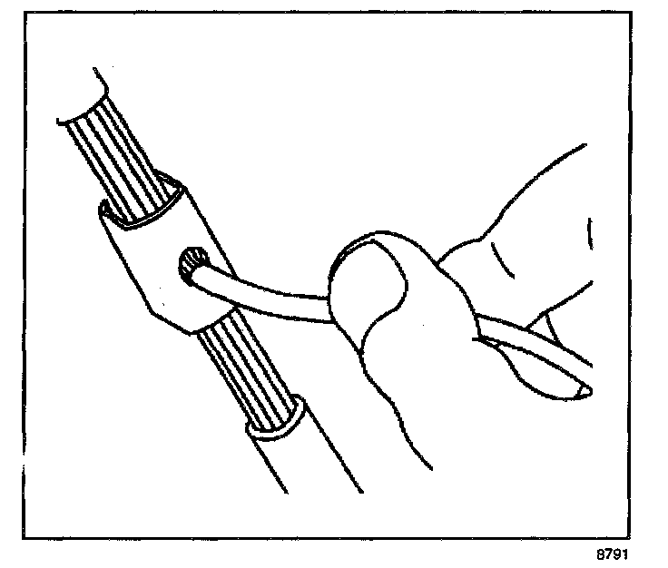 - Strip approximately 7.5 mm (5/16 in) of insulation from each wire to be spliced.