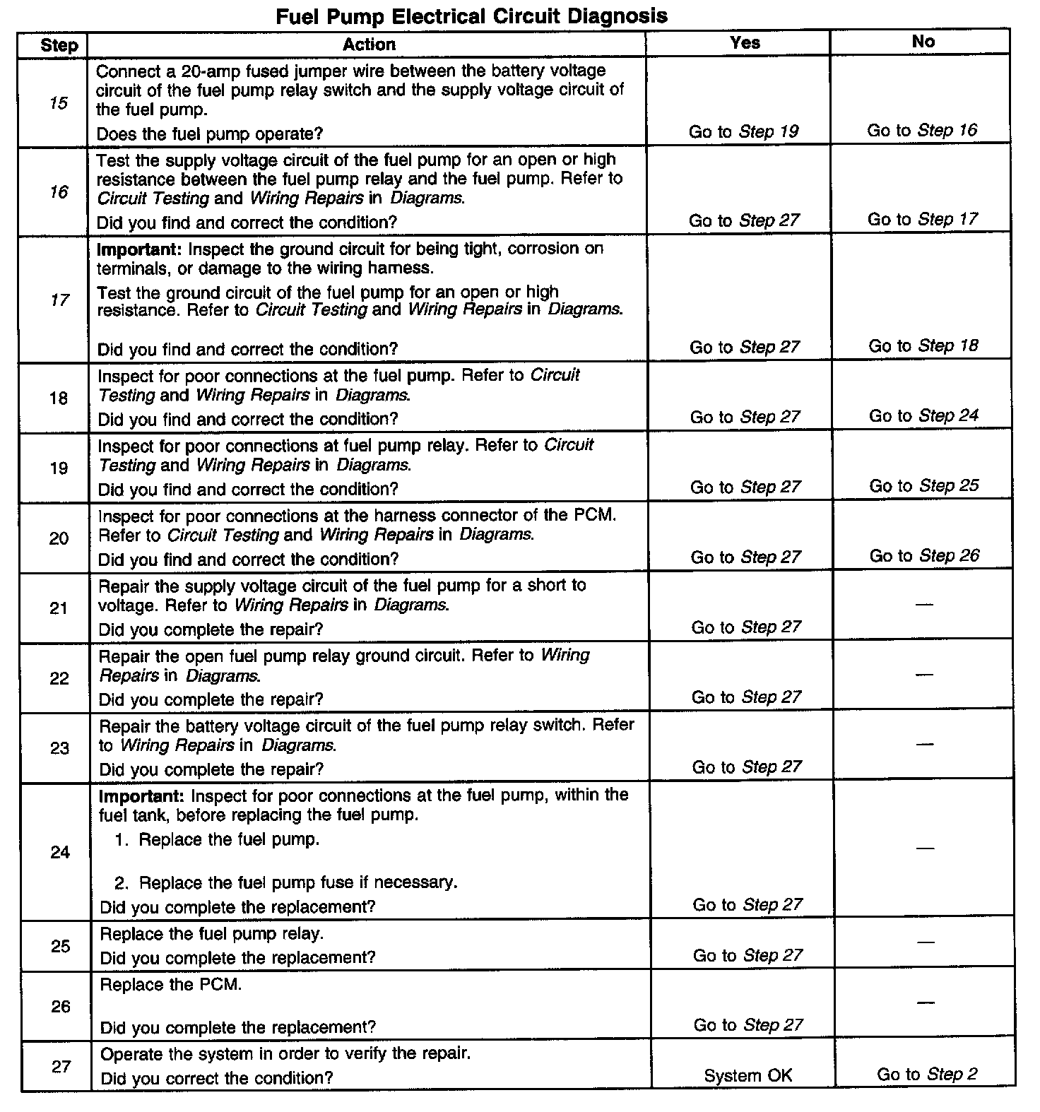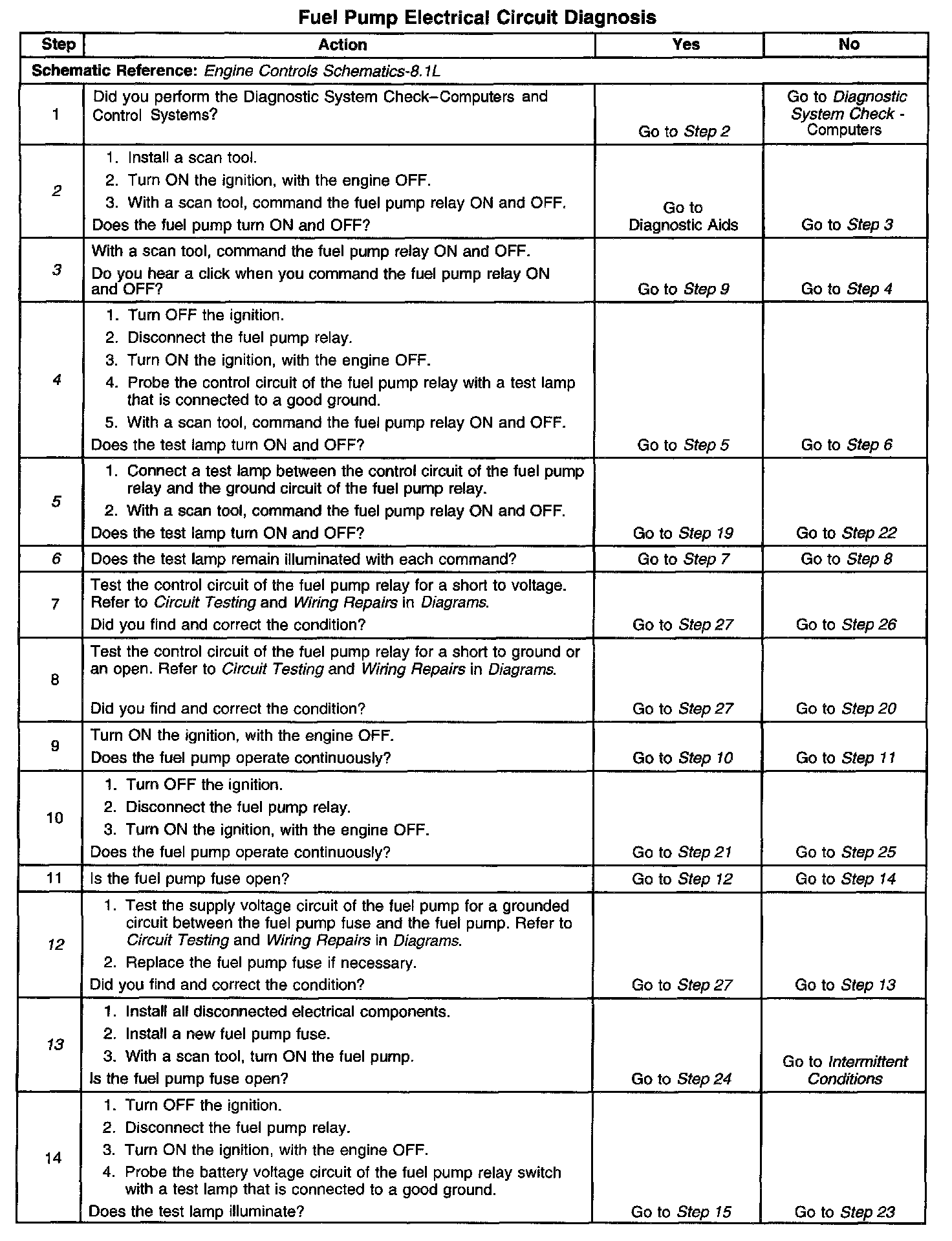 Fuel Pump Electrical Circuit Diagnosis