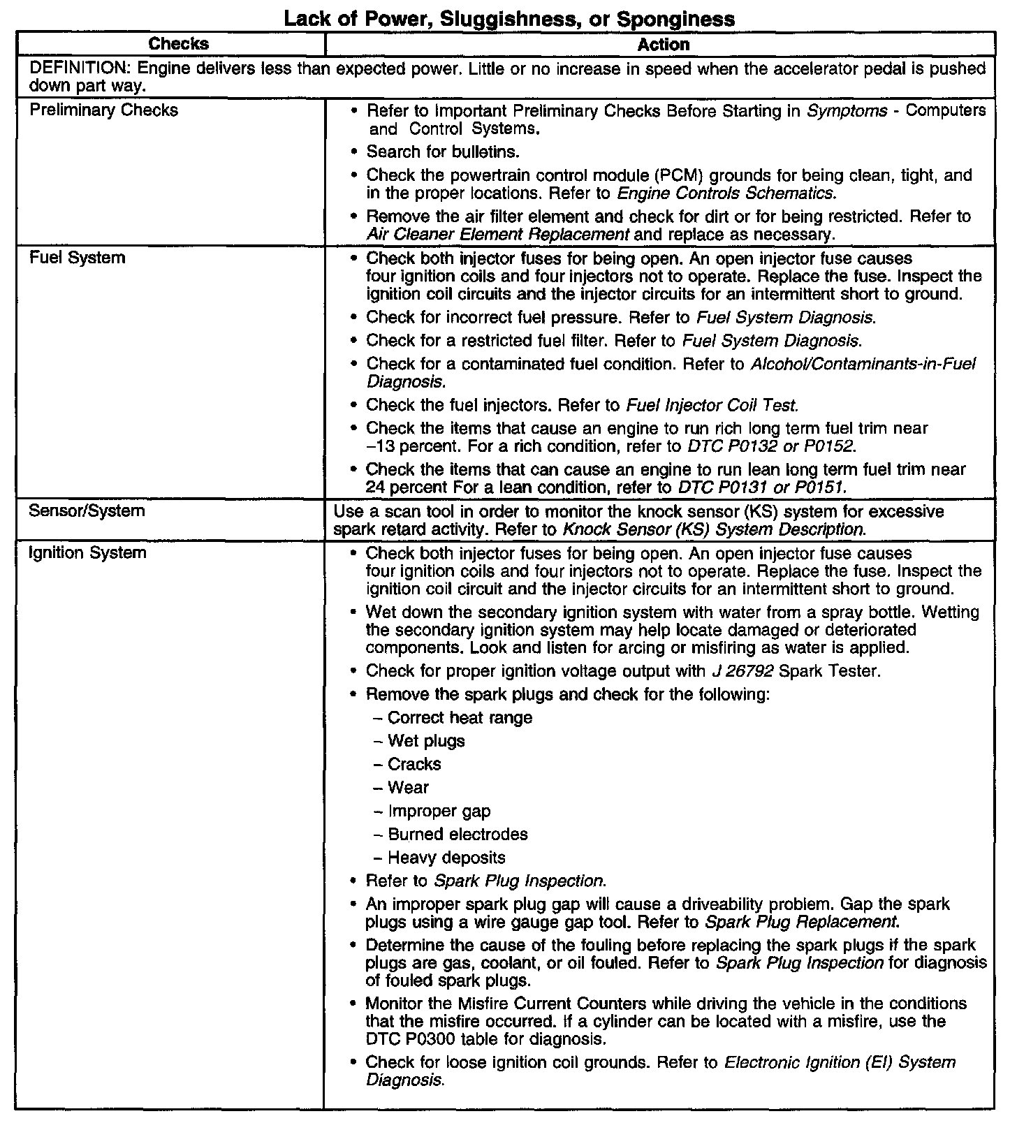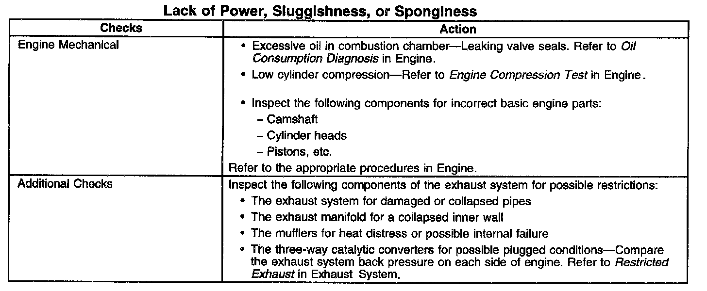 Lack of Power, Sluggishness, or Sponginess