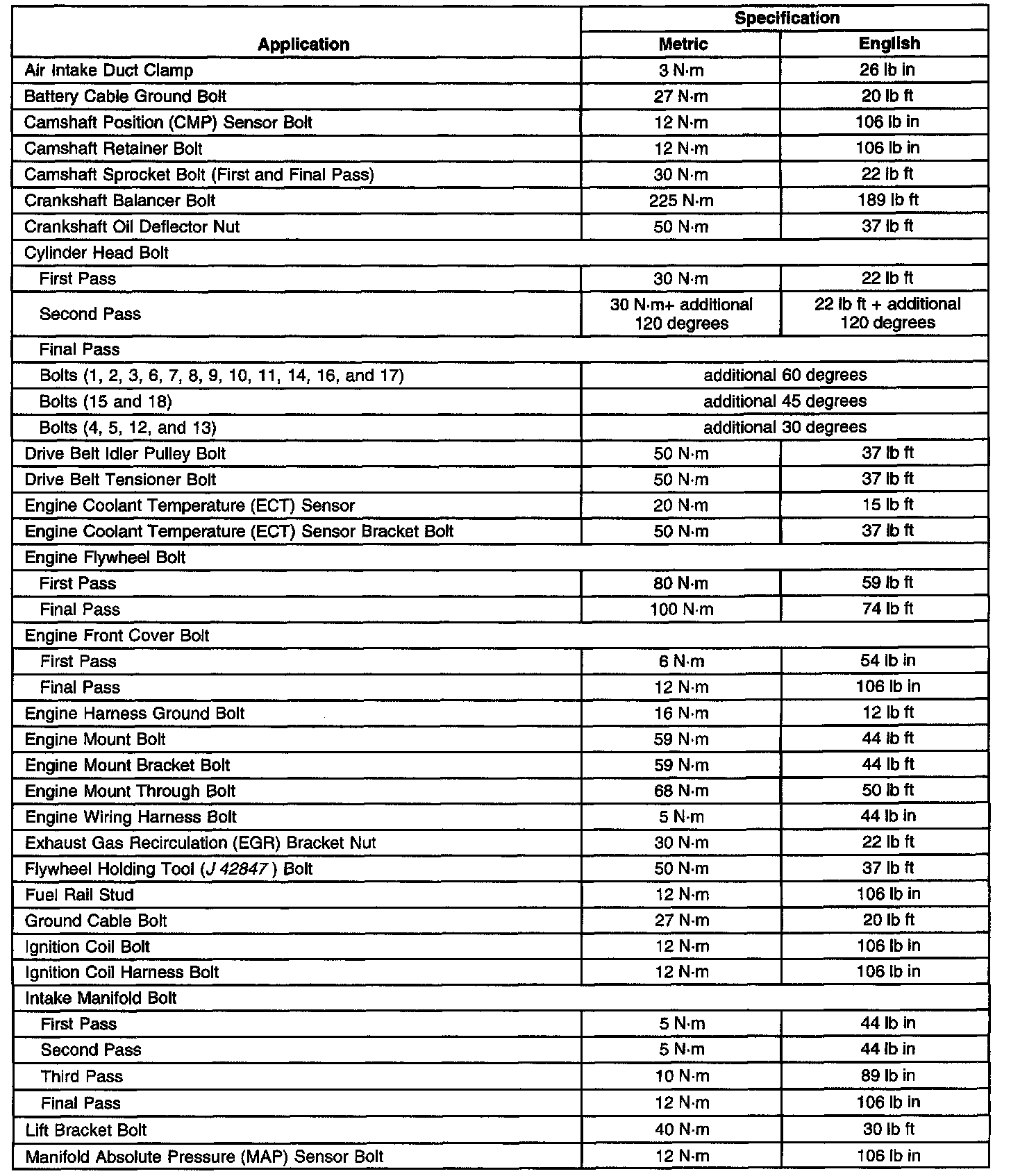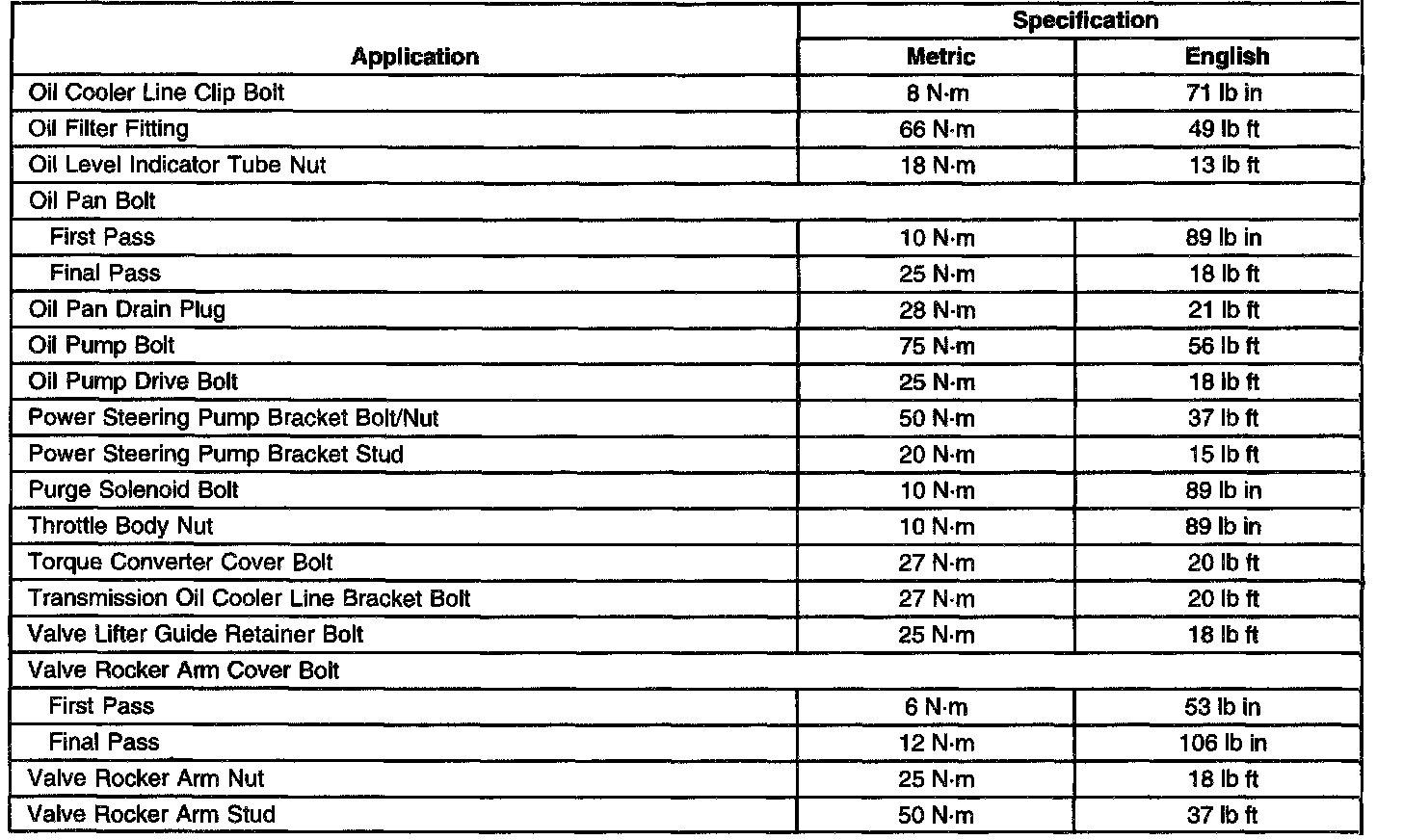 Fastener Tightening Specifications