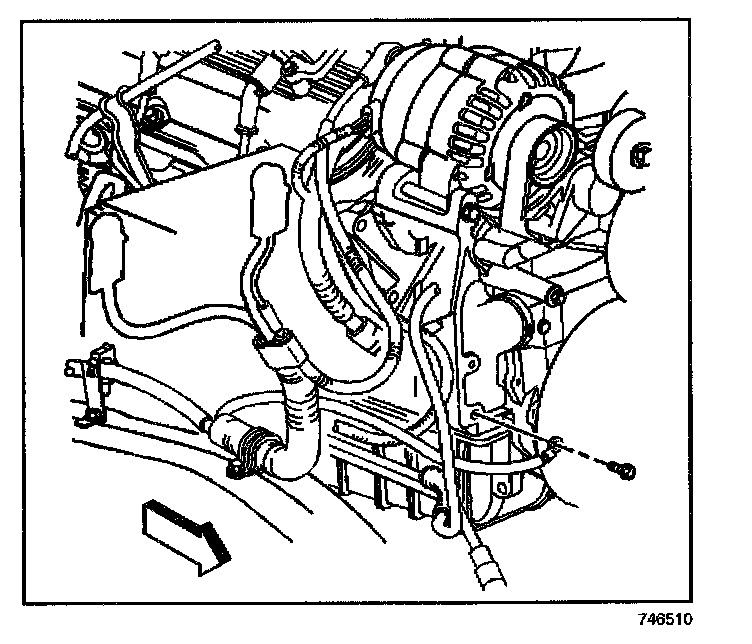 13. Install the ground wire bolt at the engine block.