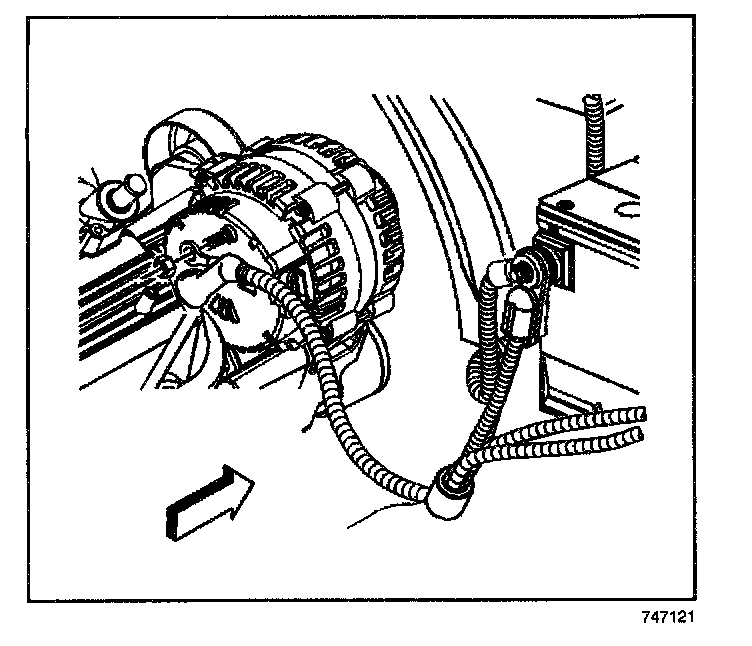 3. Disconnect the generator electrical connector (1).