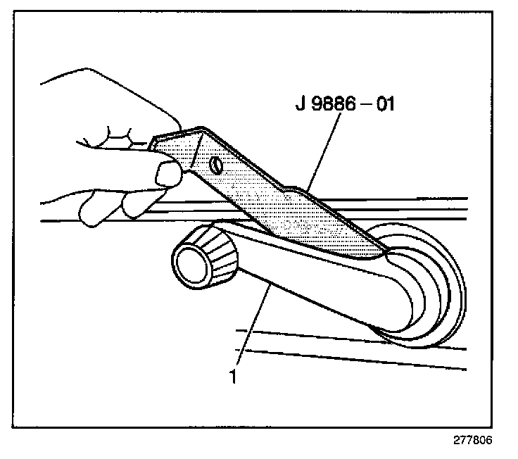 1. Remove the window regulator handle (1) from vehicle by completing the following steps: