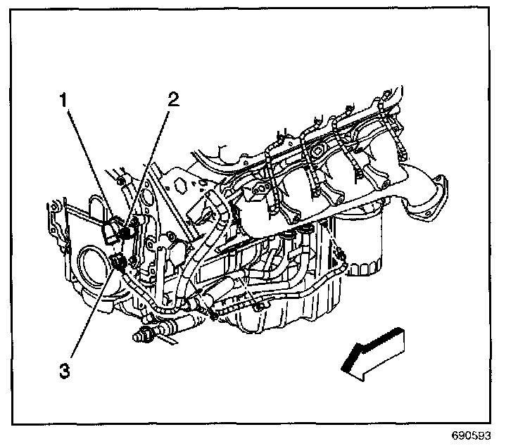 3. Disconnect the camshaft position (CMP) sensor harness connector (3) at the CMP sensor (1).