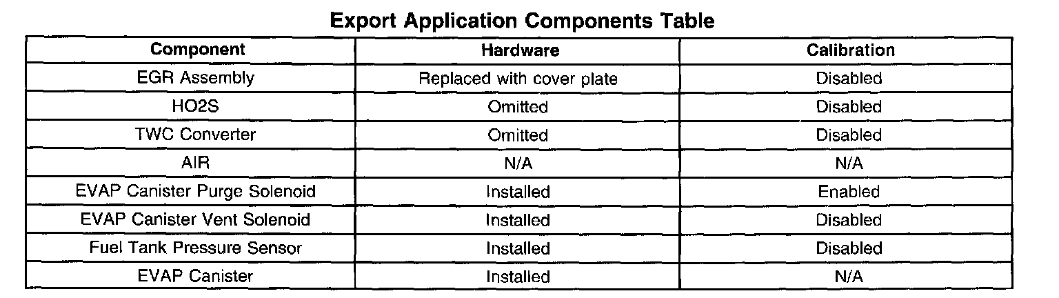 Export Application Components Table: