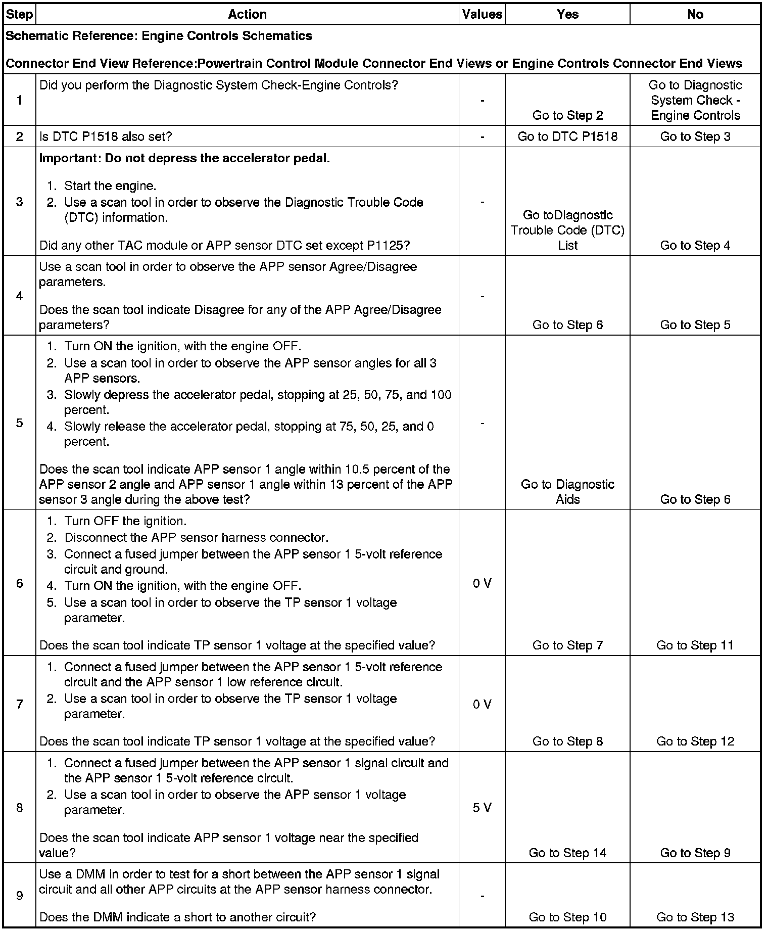 6. The APP sensor 1 shares a common 5-volt reference circuit with the TP sensor 1. Monitoring the TP sensor 1 voltage aids in diagnosing the APP sensor 5-volt reference and low reference circuits. If the scan tool displays near 0 volts then the circuits are OK.