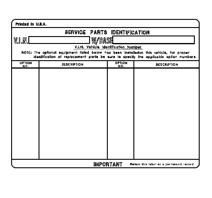 The Service Parts Identification Label is on the side wall of the cab, behind the passenger's seat. The label may also be located at the lower corner of the passenger's side of the cab wall.