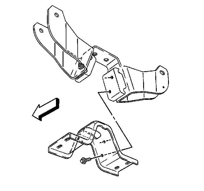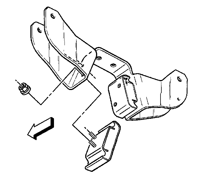 2. Remove the support bracket to the mounting bracket bolts, washers, and nuts.