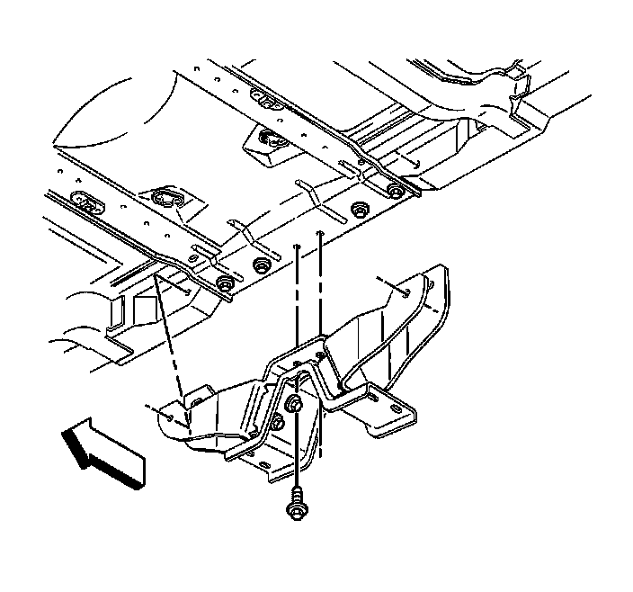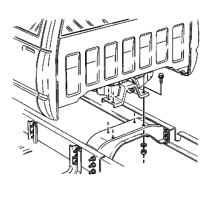 4. Install the four support brackets to the frame cross member nuts, washers, and bolts.