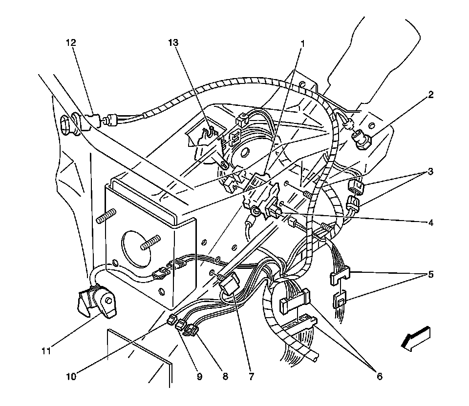 Instrument Panel Harness to Instrument Panel, Right Front View