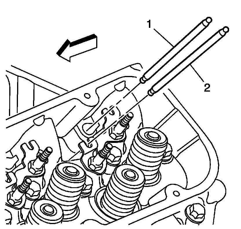 Important: The exhaust valve push rods (2) are longer than the intake valve push rods (1).