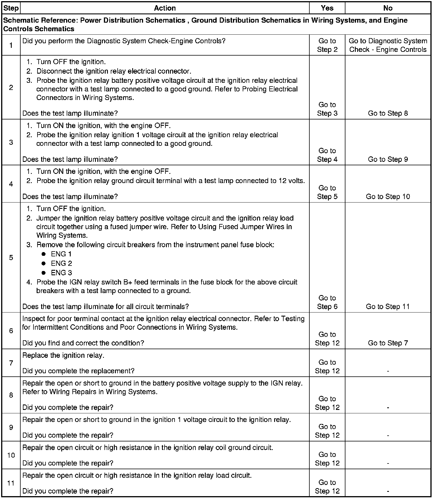 5. This step is testing the IGN relay load circuit feed to circuit breakers and fuses.