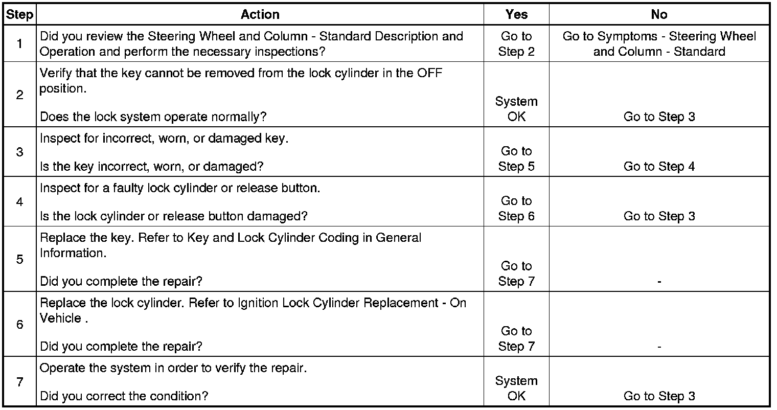 Ignition Key Cannot Be Removed from the Ignition Lock Cylinder