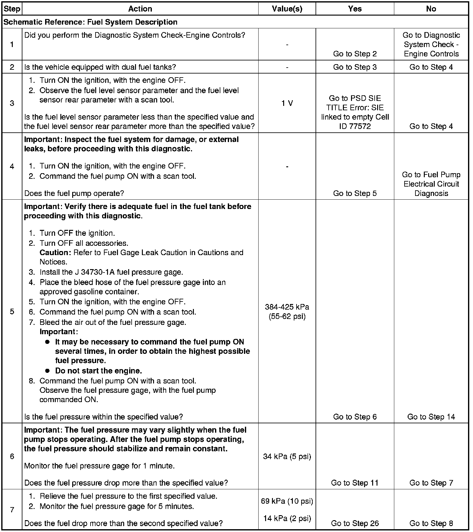 6. This step tests for an internal fuel leak. If the fuel pressure drops during this test, then an internal loss of pressure is indicated.