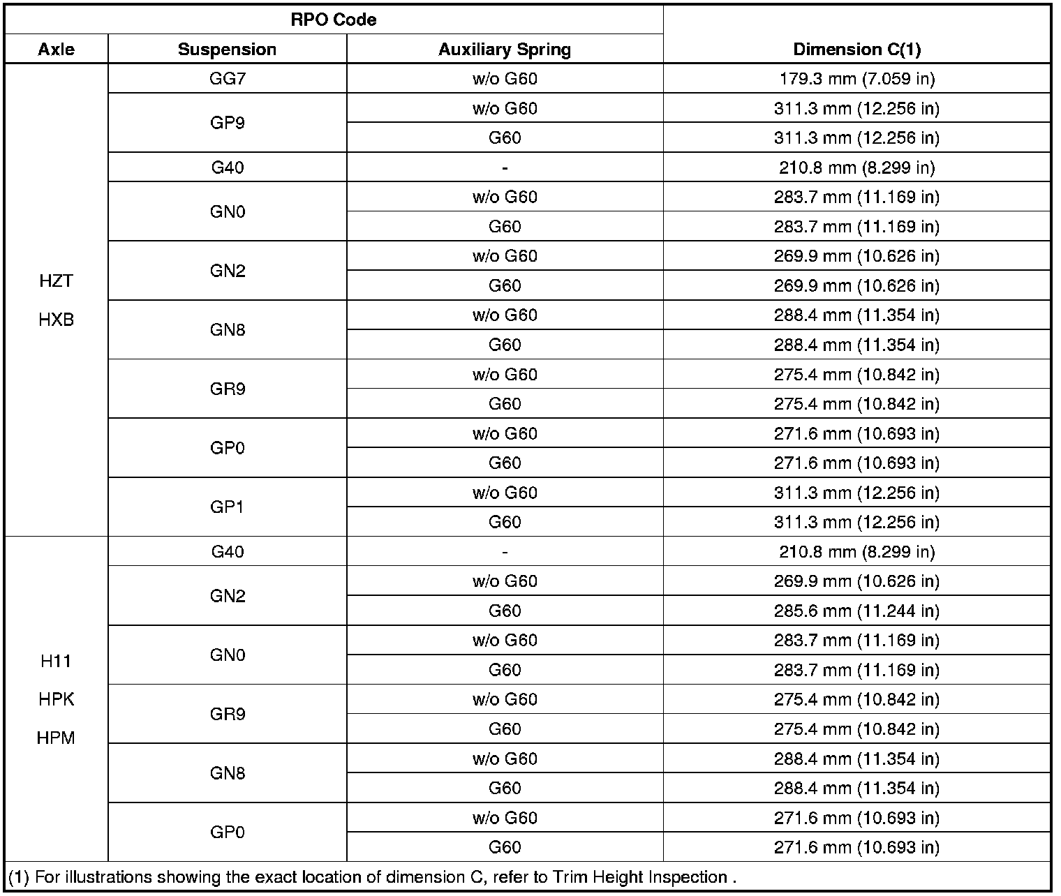 Trim Height Specifications