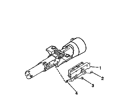 3. Install the ignition switch assembly (1) onto the dimmer and ignition switch mounting stud (4).