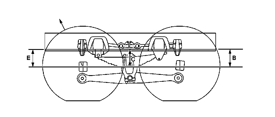 The tandem axle must be measured in three locations to be sure of proper ride height. B, C, E height dimension measurements determine the proper rear end ride height. There is no adjustment procedure. Repair may require replacement of suspension components.