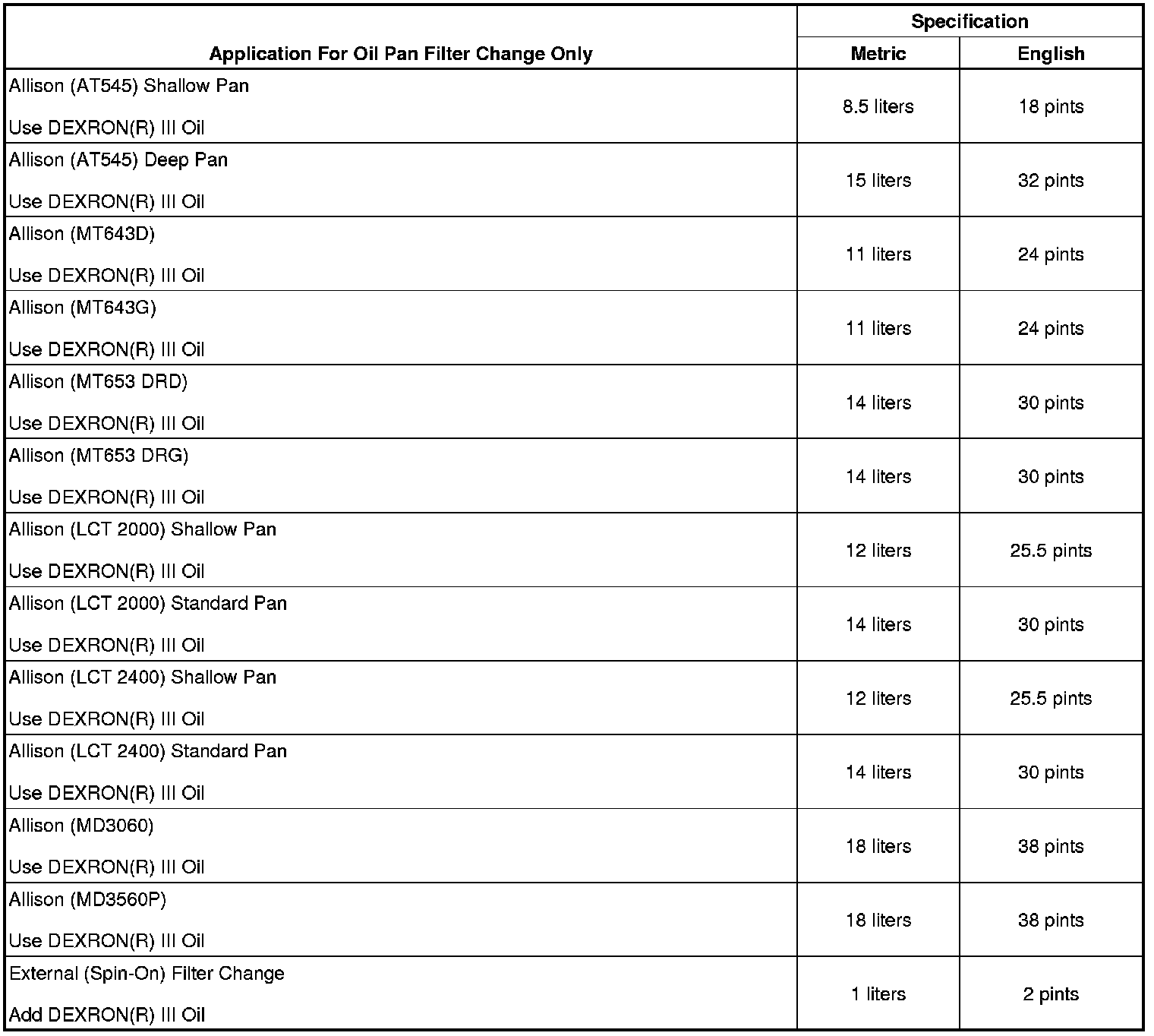 Fluid Capacity Specifications